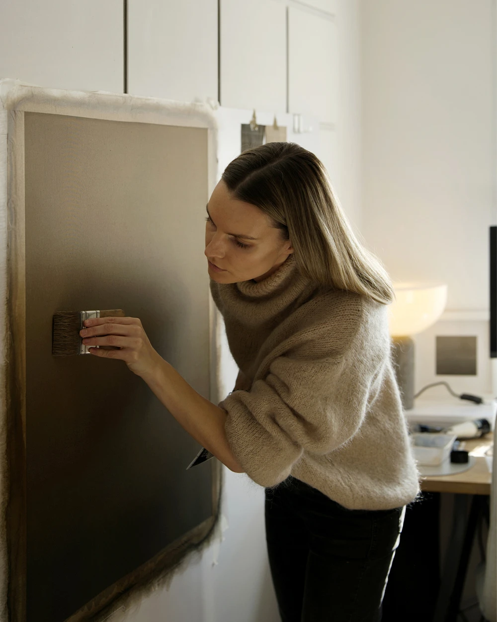 Marta Rószczka, contemporary artist, living and creating in Poland, founder of MR Atelier. Her artistic practice develops at the intersection of painting and sculpture, with each creative process beginning in a space of reflection- questions, analysis, and contemplation that lead to artistic expression. Raised in a family with strong craft traditions, she has been connected to matter and form since her early years. A distinctive feature of her work is subtle, minimalist compositions, in which rhythmic arrangements of painterly structures merge with organic sculptural forms.