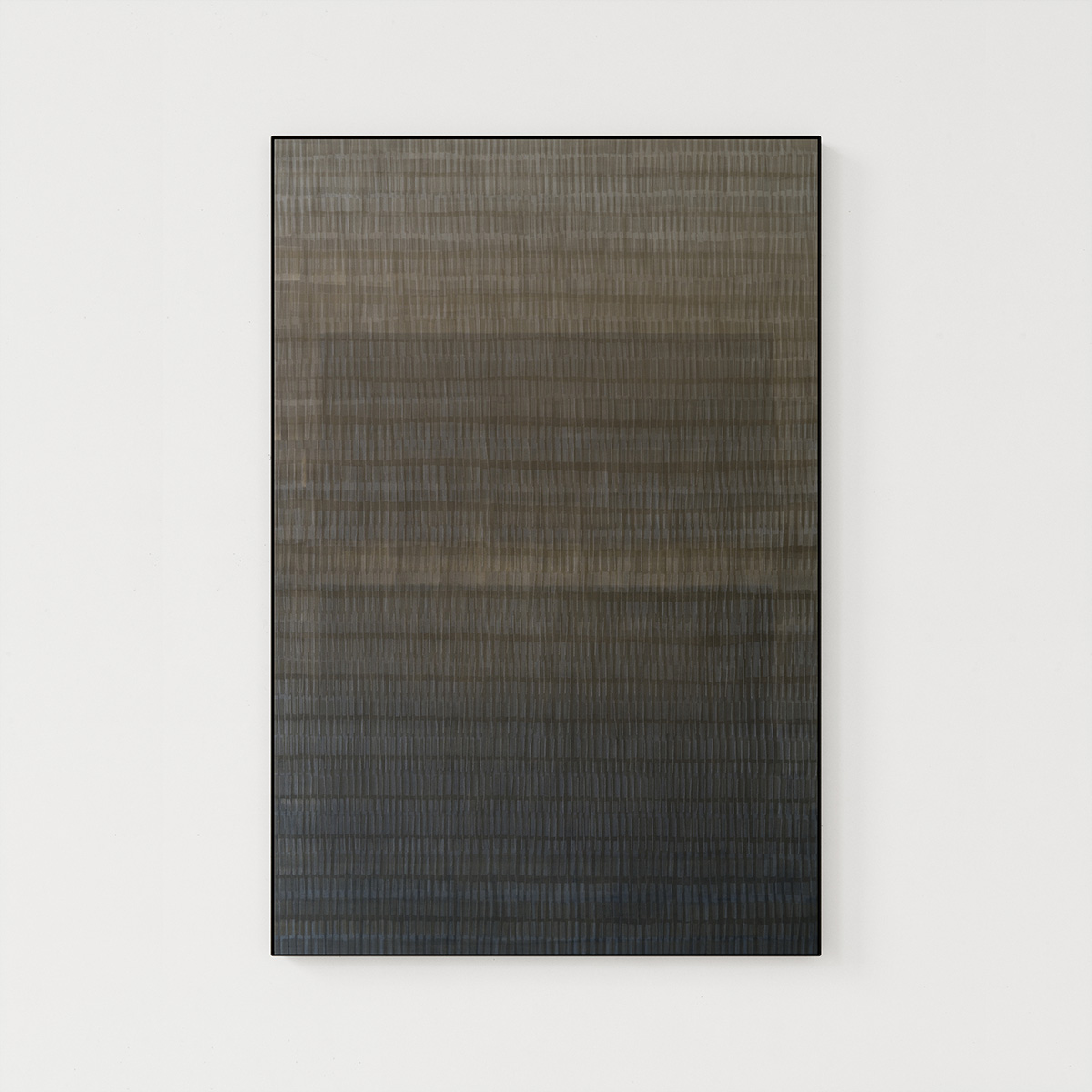 The canvas is made with acrylic paints and uses a unique technique that involves applying semi-transparent layers. This approach allows for subtle variations in tone and texture. It is finished with a satin varnish and is unframed.