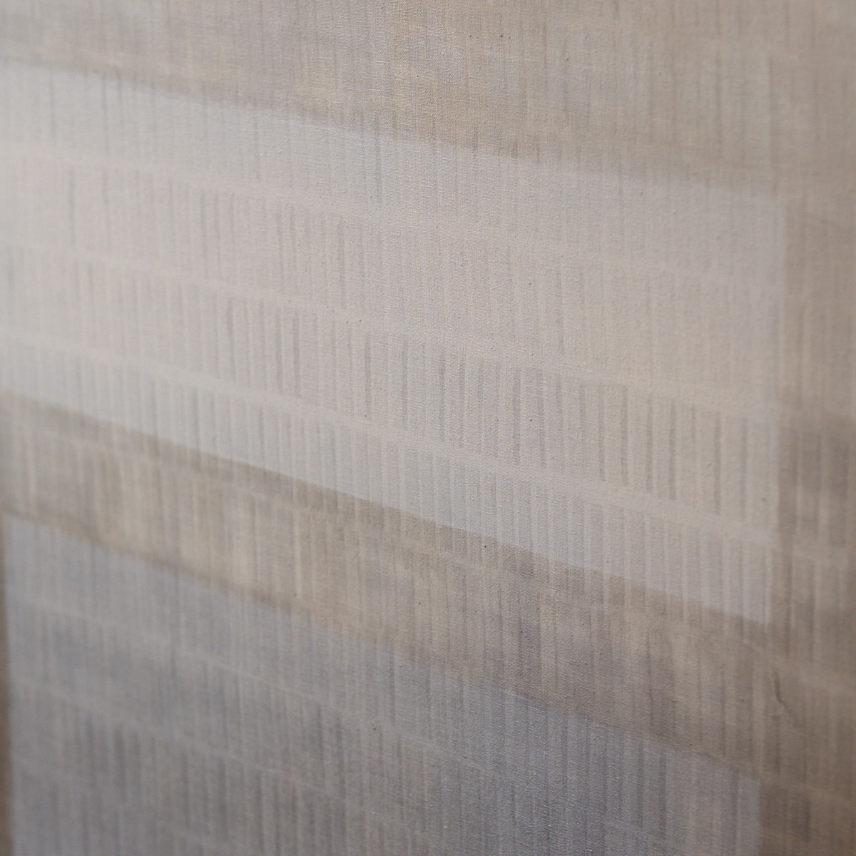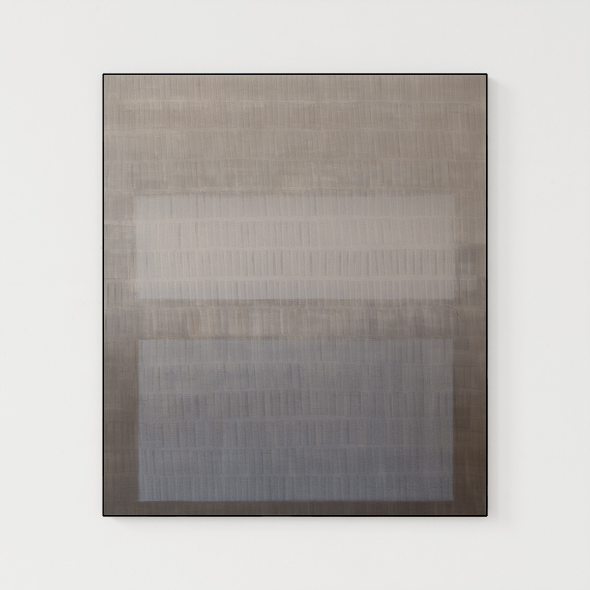 The canvas is made with acrylic paints and uses a unique technique that involves applying semi-transparent layers. This approach allows for subtle variations in tone and texture. It is finished with a satin varnish and is unframed.