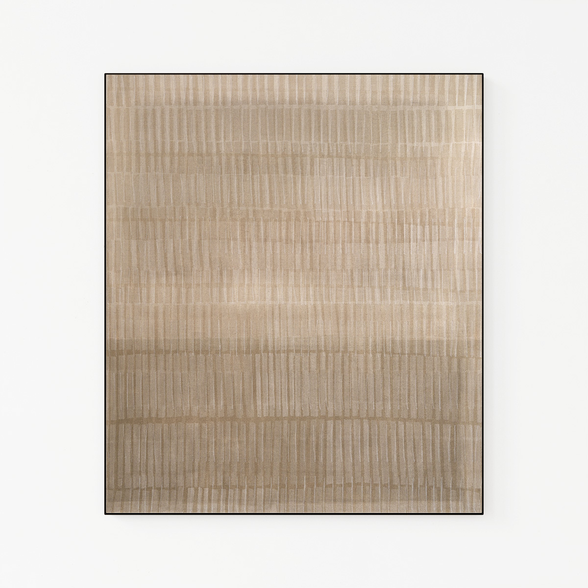 The canvas is made with acrylic paints and uses a unique technique that involves applying semi-transparent layers. This approach allows for subtle variations in tone and texture. It is finished with a satin varnish and is unframed.