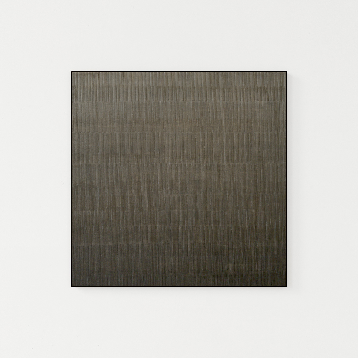 The canvas is made with acrylic paints and uses a unique technique that involves applying semi-transparent layers. This approach allows for subtle variations in tone and texture. It is finished with a satin varnish and is unframed.