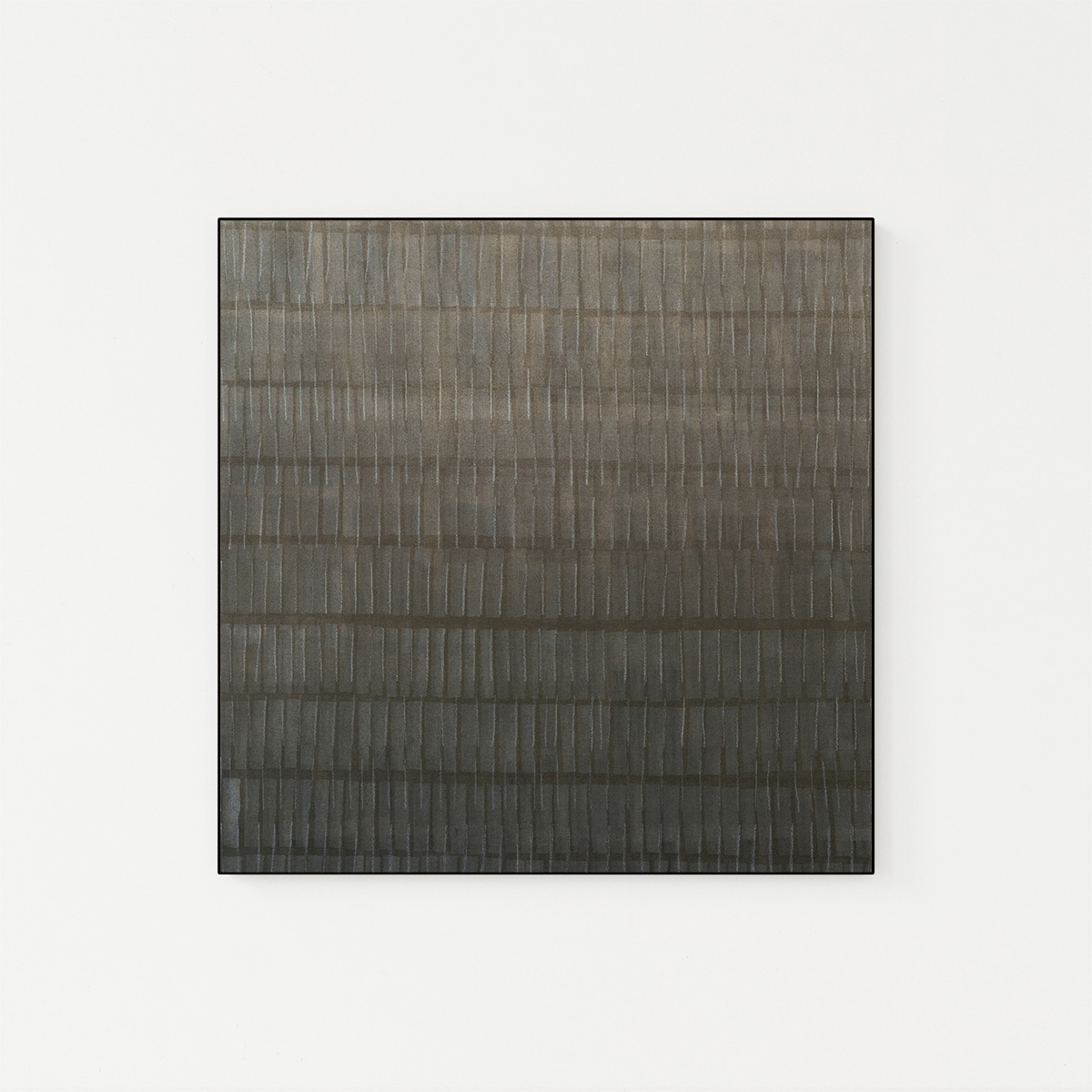 The canvas is made with acrylic paints and uses a unique technique that involves applying semi-transparent layers. This approach allows for subtle variations in tone and texture. It is finished with a satin varnish and is unframed.