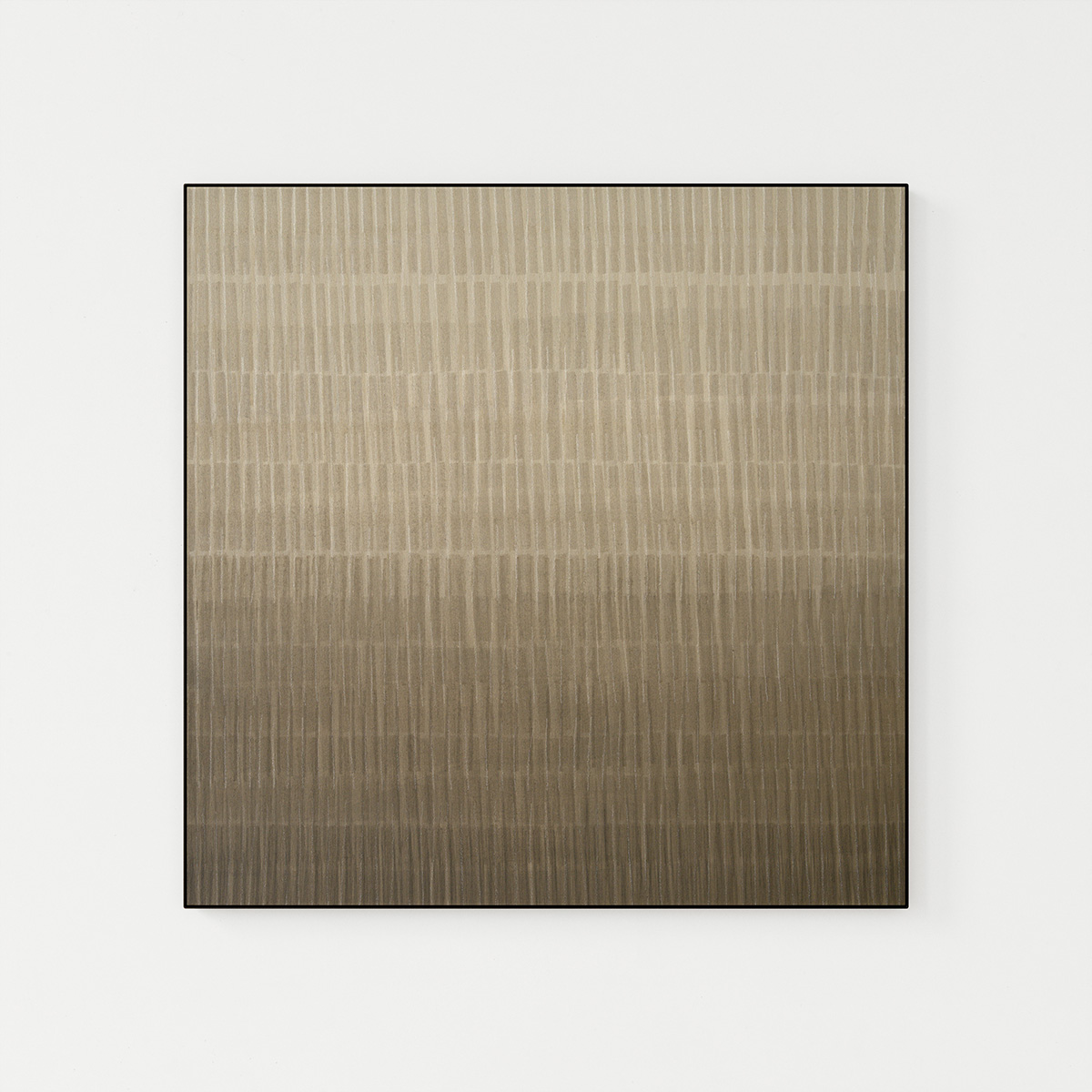 The canvas is made with acrylic paints and uses a unique technique that involves applying semi-transparent layers. This approach allows for subtle variations in tone and texture. It is finished with a satin varnish and is unframed.